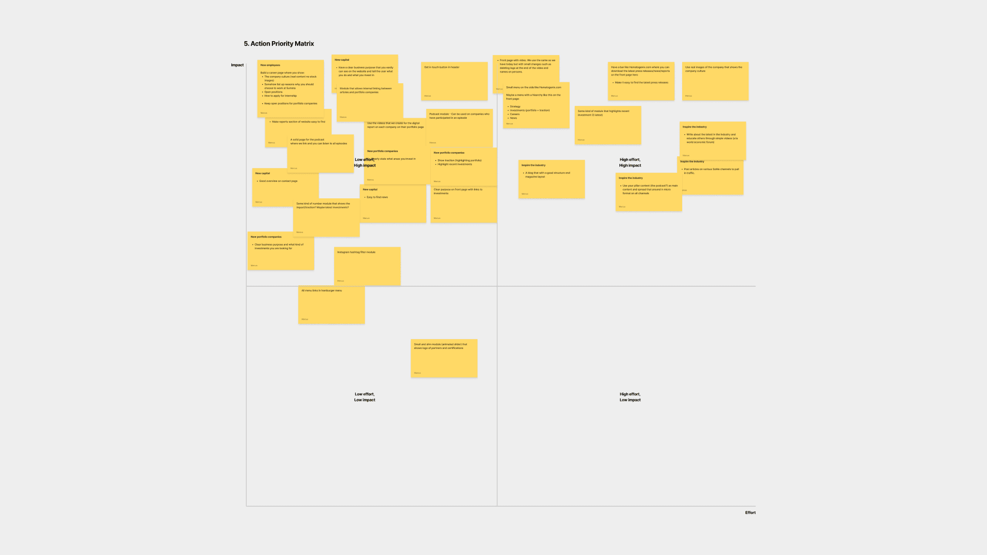 Once we know which pages will be on the homepage, it's time to look more closely at the content. Providing the right information on the right page is a basic prerequisite for creating a good user experience. In this phase, we set the hierarchy of what should be communicated on each page.