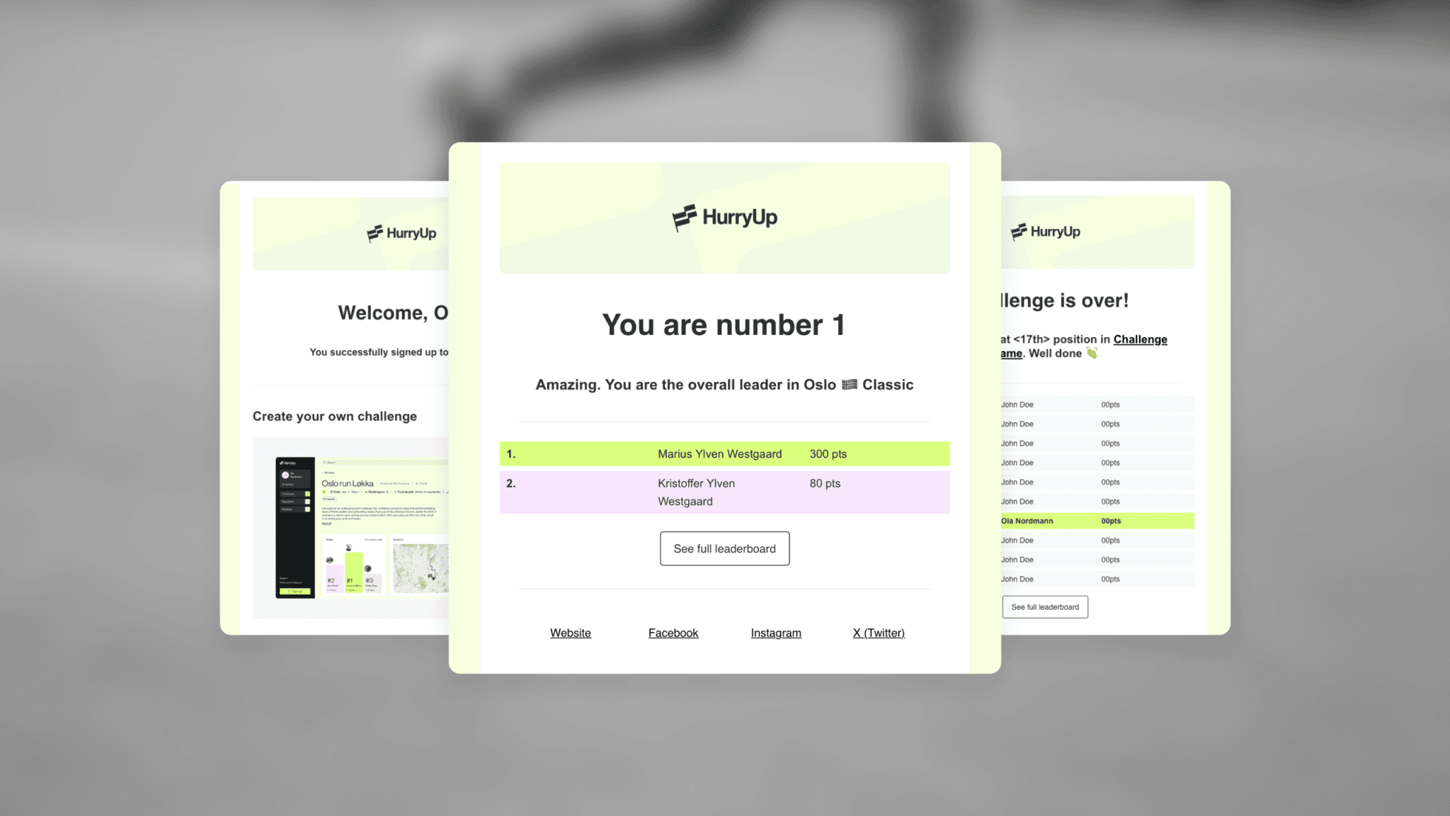 Now we have launched HurryUp. Connect your sport device and compete in private or public challenges and climb the leaderboard.