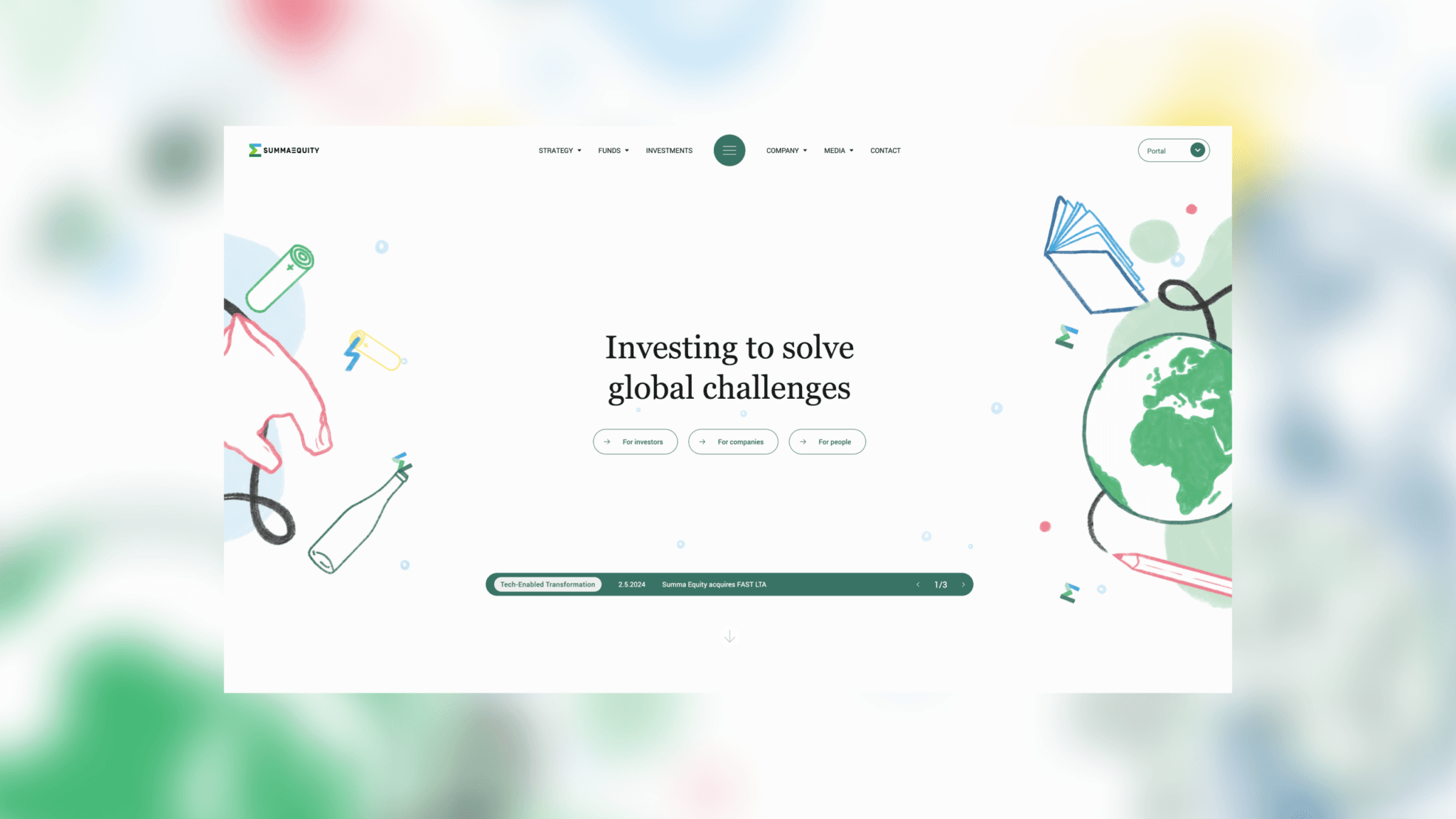 Summa Equity operates in an industry characterized by suits, ties, and polished shoes, but they wanted to appear more playful and less formal. This was the starting point for the new website we created for them. The result was a consistently playful illustration style throughout the website, while maintaining a strict layout and content architecture.