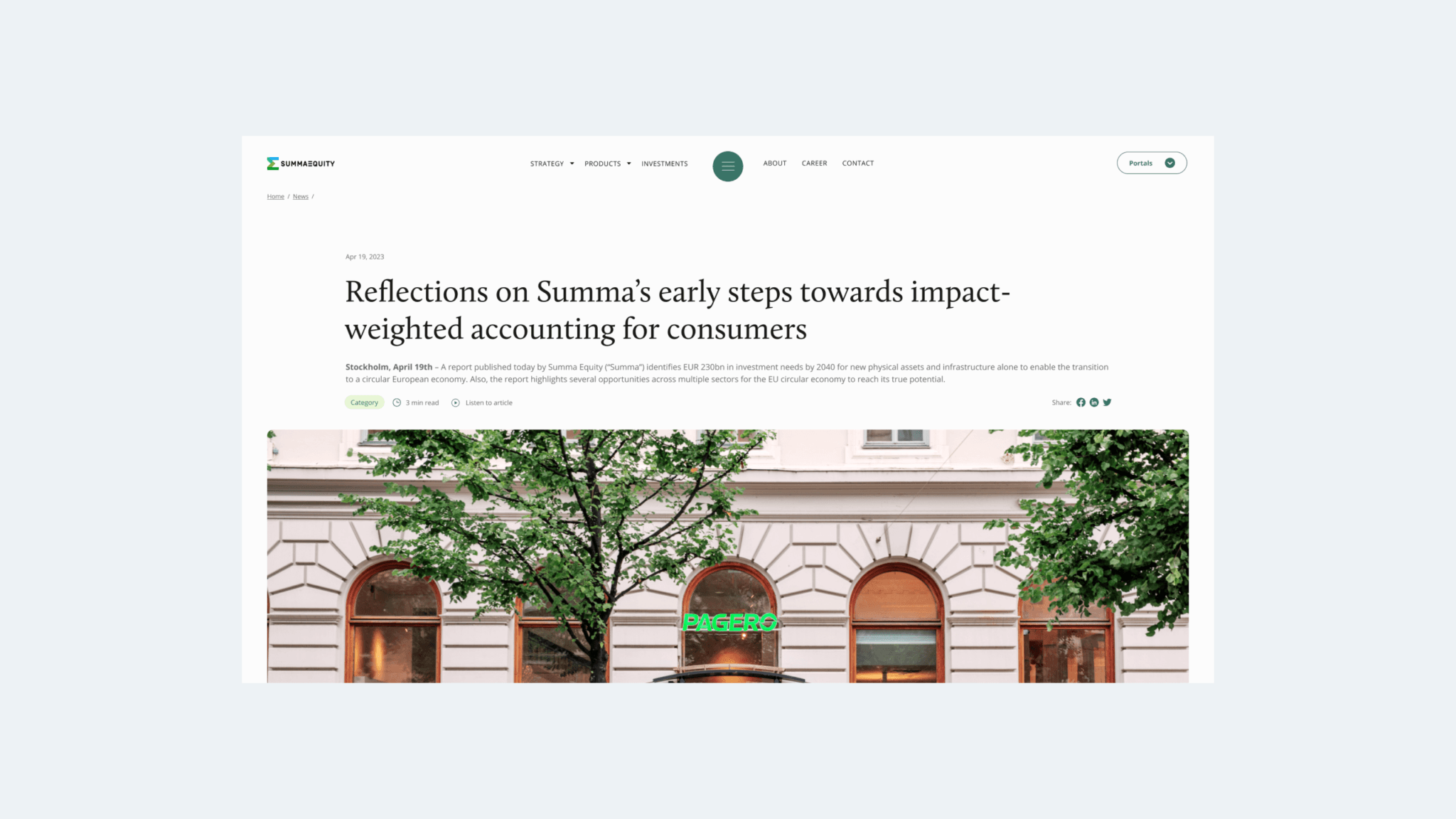We create websites in Craft CMS, which includes an excellent blog solution. For Summa Equity, we also display estimated reading time, and you can listen to the article via an AI-generated voice.