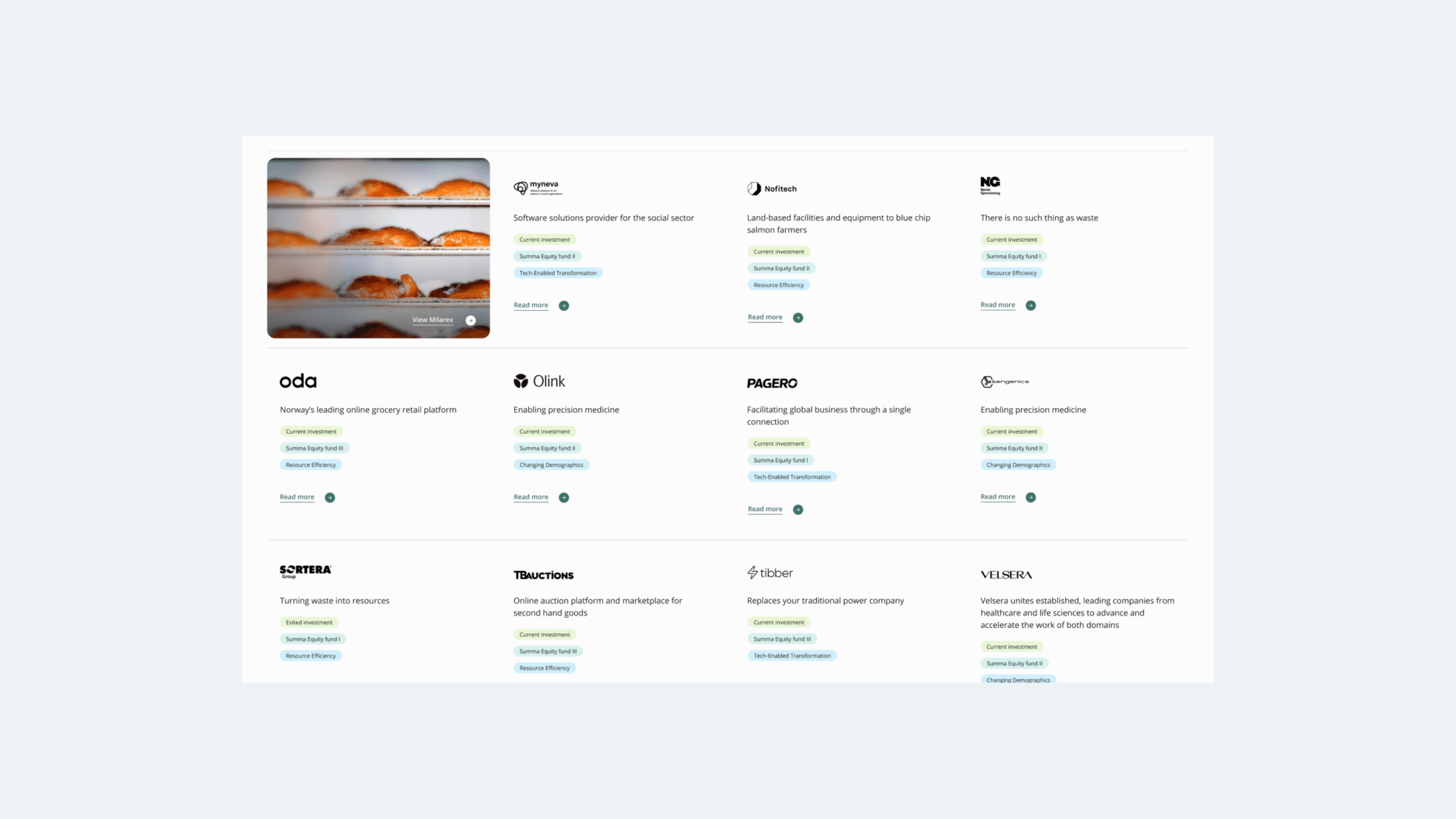 All the companies in their portfolio can be filtered by status, fund, and theme. We have used different colors to distinguish the categories. Check it out here.