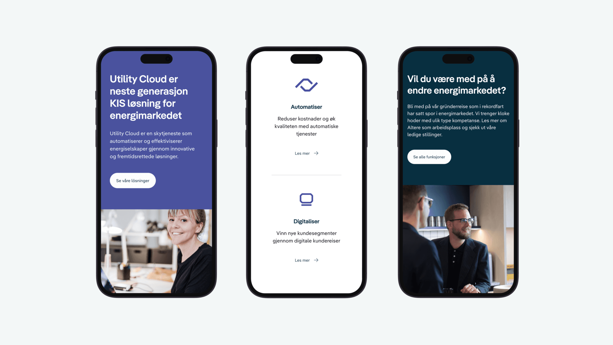 We carried forward the visual identity when designing the website, resulting in a simple and clean user interface. This effectively communicates why UtilityCloud is a flexible and efficient KIS platform for energy companies.