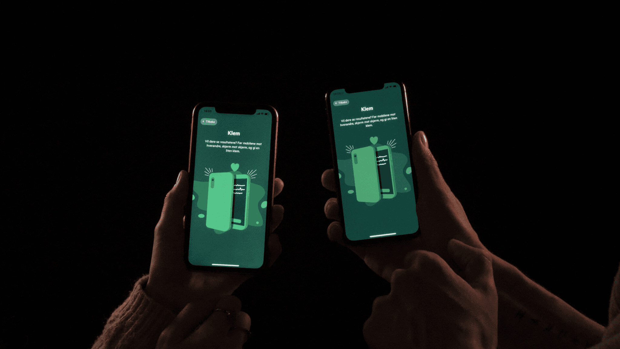 An important goal of this app is to improve communication about relationships. Therefore, the app is designed in a way that requires partners to be together to 'unlock' each other's responses. This is done by bringing the mobile phones close to each other, screen to screen, to share a nice little hug.