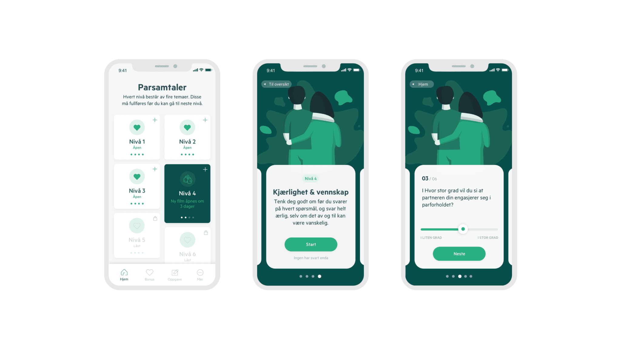 Frode Thuen and Catrin Sagen have put together a series of smart tips and advice specifically tailored to the themes and levels of the couple conversations. The further you progress in the relationship course, the more relationship advice you gain access to.